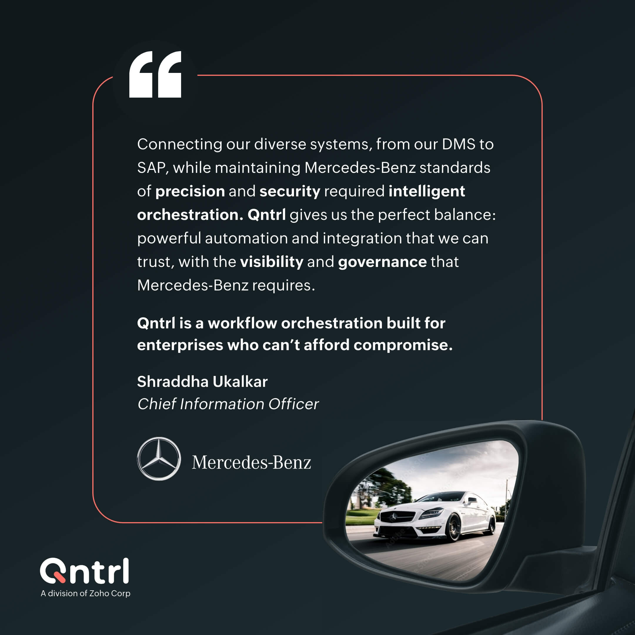 Most enterprises figure this out the hard way: after a failed go-live, a compliance gap, or a customer experience disaster that traces back to systems that couldn't talk to each other. Mercedes-Benz figured it out beforehand with Qntrl!